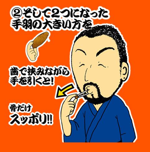 必読★酔っ手羽名物★伝説の手羽先の愉しみ方【その2】そして2つになった大きい方を歯ではさみながらスッポリ抜くと…骨だけすっぽり!